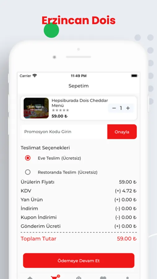 Erzincan Dois, sizi lezzet yolculuğuna çıkarmaya hazır. Modern ve çağdaş çizgilerin kullanıldığı restoranımızda leziz tatlar eşliğinde keyifli anlar yaşayabilirsiniz. Dilediğiniz yerden yemek siparişi verebilir, en lezzetli tatlarımızı deneyebilirsiniz!