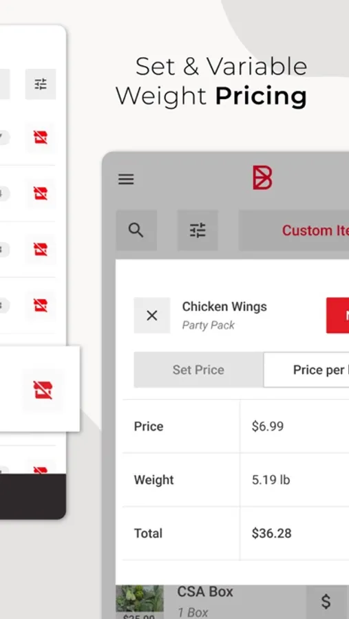 - Set Prices & Variable Weight Pricing. Choose whether you want to sell items by weight or set a fixed price for your products.