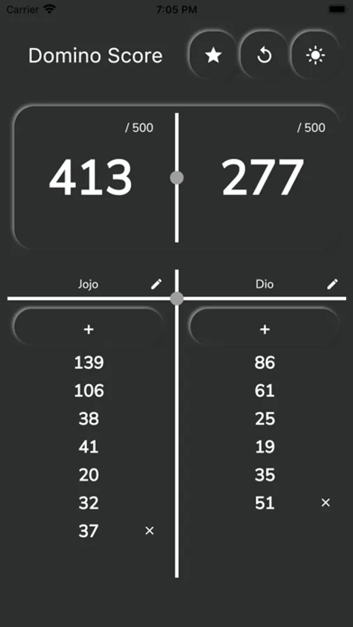 "Domino Score Tracker" is an app where you will be able to write down the scores of your domino games. It allows you to pick the score limit for the match and it also saves half played games so games that get interrupted for whatever reason don't get lost.