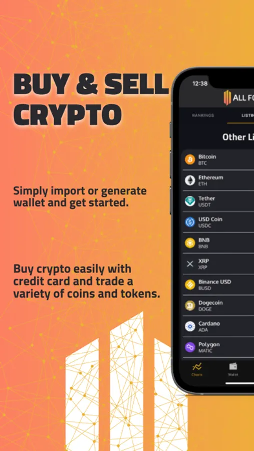 From wallet creation/import, to credit card purchases, to trading on decentralized exchange networks, and to high security measures, ALL FOR ONE covers everything for a relaxed and user-friendly management of your crypto assets.