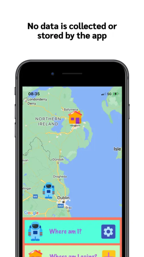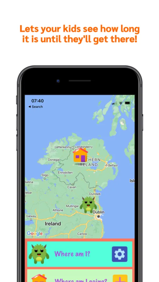 The How Long Until We're There? app! It's a kids' maps app, powered by Google Maps, that shows