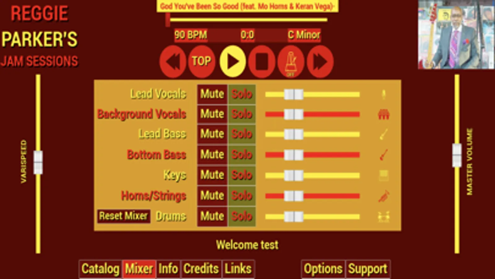 Jam Sessions allows you to access Reggie Parker's latest songs, tutorials, and music videos all in one place. Each song allows you to adjust the volume, mute, and solo different parts allowing you as a musician to more easily learn, jam along, or even easily make yourself a backing track on the go. Slow down or speed things up, access a click, see key & tempo information, and more!