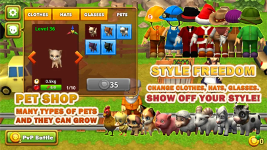 - The game allows you to freely express your personality by shopping for clothes, hats, glasses. Especially you can keep a pet, and the pet can grow up every day. (totally free)