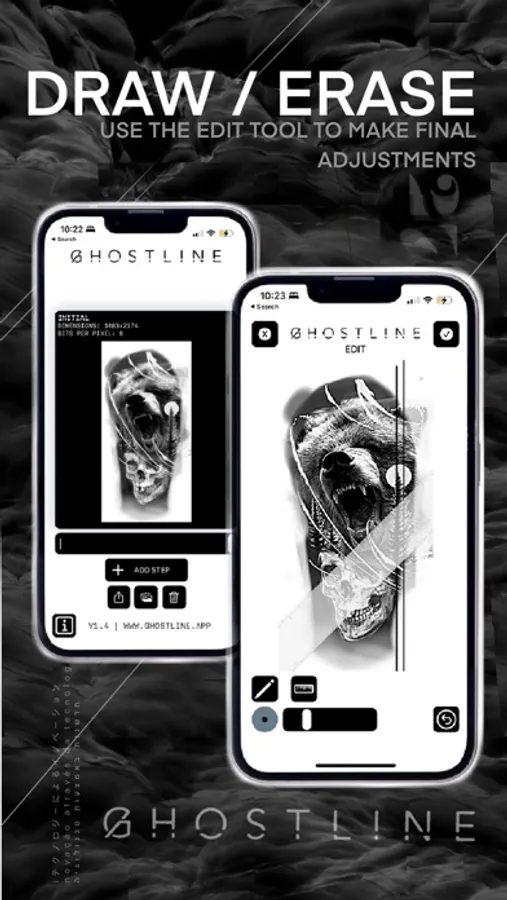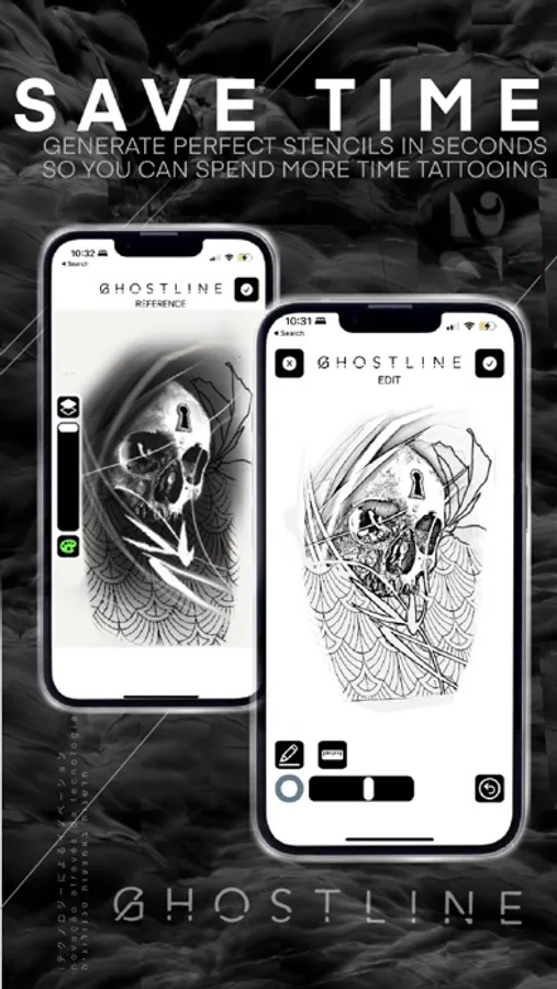 GHOSTLINE is a subscription based application for the tattoo industry. GHOSTLINE can quickly generate perfect, customizable stencils, upscale & sharpen your artwork, and provides the industry’s first print-scale technology so you can print your stencils at any size you need. GHOSTLINE was created to help you SAVE TIME. The AI-driven functionality of GHOSTLINE allows you to optimize your workflow and spend more time doing what you love most; making tattoos that you are proud of.