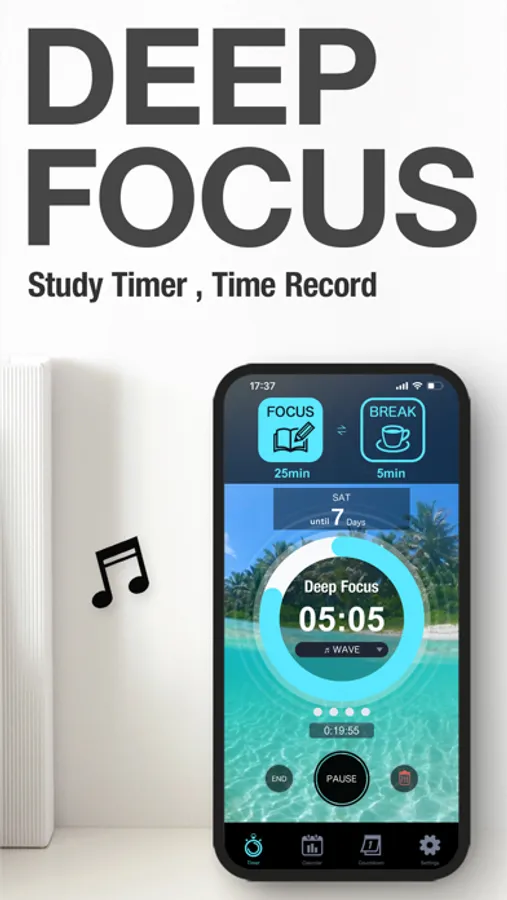 It is also ideal as a background music app for study and work, a time recording app, and a remaining days count app!