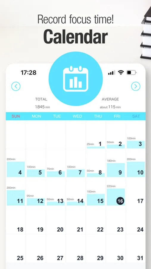 Not only can you see at a glance the time you focused on, but you can also use it for review and future improvements!