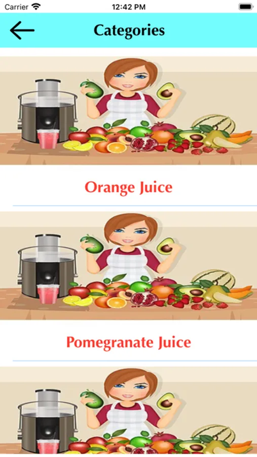 Når appen er startet, kan brugeren vælge den juicekategori, hvis kundeoplysninger de vil administrere.