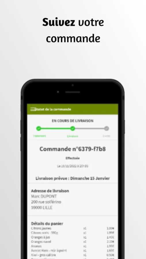 Suivez votre commande en toute simplicité et restez informés de son état en temps réel en activant les notifications.