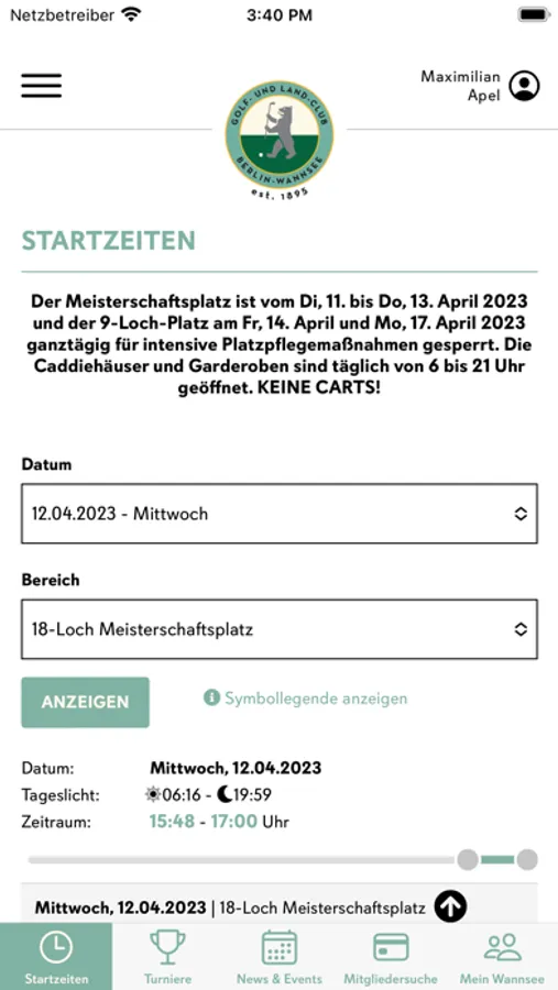 Die Mitglieder-App des Golf- und Land-Club Berlin-Wannsee e.V stellt zahlreiche Funktionen und Informationen zur Verfügung.