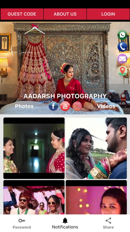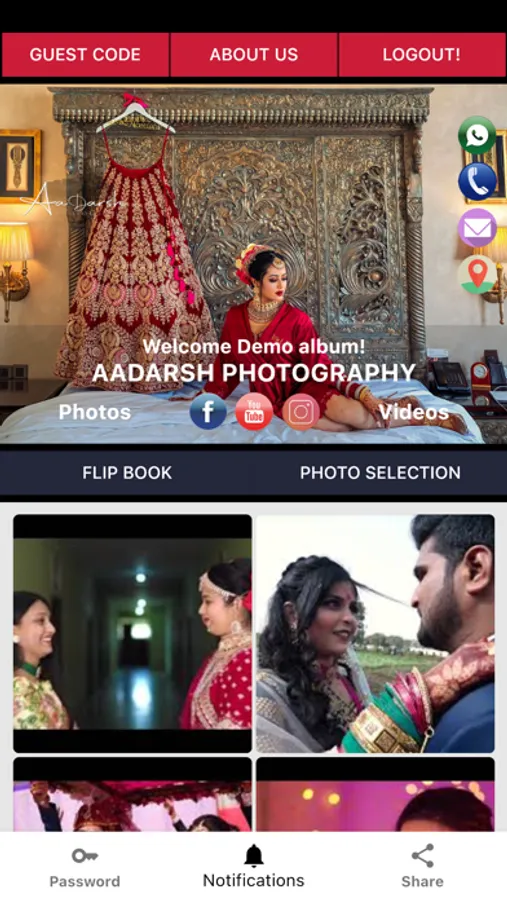 Aadarsh Photography App Provides Photo Selection Services, and Flipbooks to their customers. Customers can log in and view their events in the form of 3d flipbooks and also they can make a photo selection of their respective events on their smartphones with ease. Customers can also share albums with their near and dear ones.