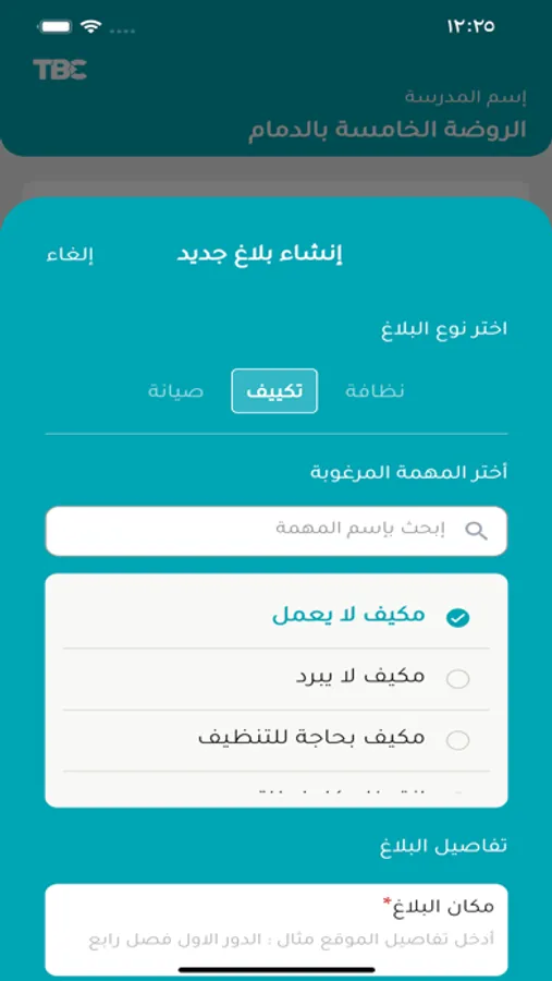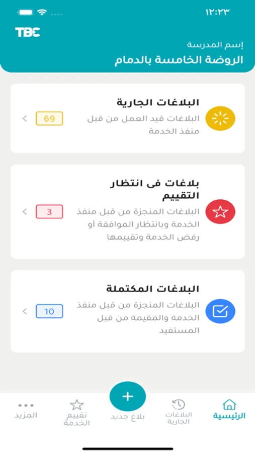 - عرض قائمة البلاغات الجارية داخل المدرسة