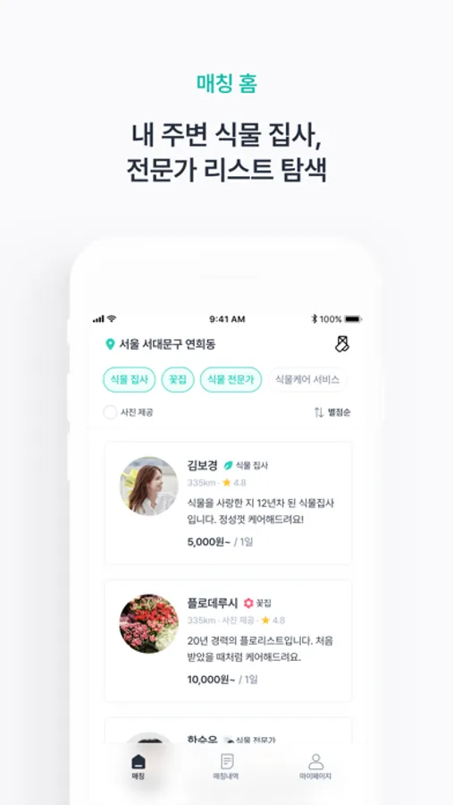 - 내 주변 식물 집사/전문가/서비스/꽃집을 볼 수 있어요