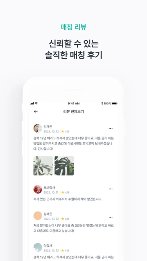 - 다른 이용자들의 리뷰를 보고 믿을 수 있는 전문가와 만날 수 있어요