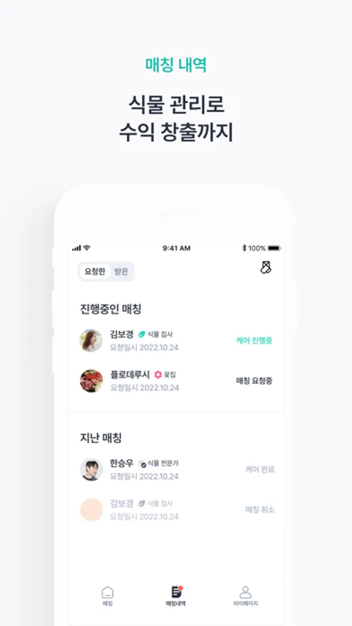 - 매칭 내역을 통해 받은 매칭들을 효율적으로 관리할 수 있어요