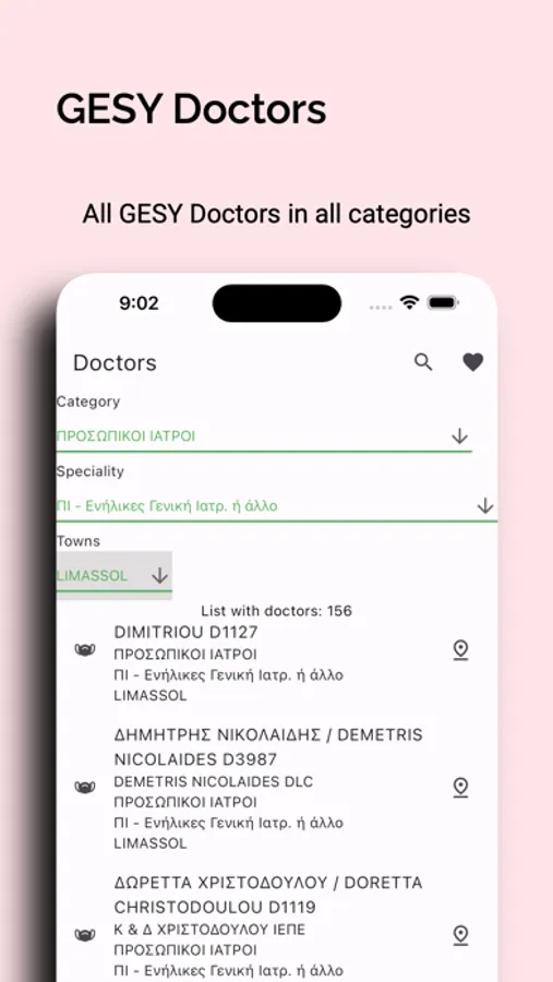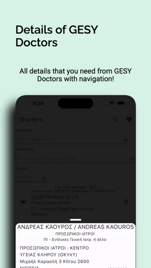 You can explore all doctors of GESY with all categories and all details of doctors