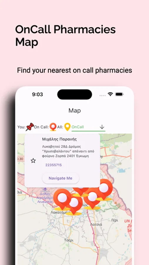 You can find/navigate your nearest OnCall Pharmacies or all your nearest pharmacies