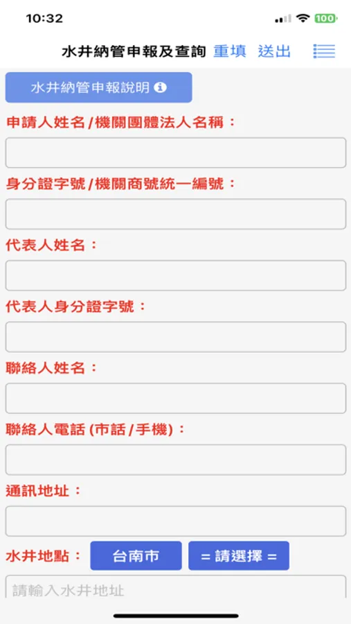 「臺南市水井納管申報及查詢」是一款提供民眾辦理臺南市轄區內之水井納管申報作業及查詢的APP應用程式,受理民眾僅需於表單上填寫相關資料並送出,即可完成水井納管申報程序,並可立即或隨時查詢是否完成申報。