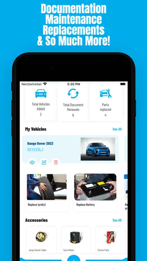 Using Vehycles App, you can now control and keep track of all your essential vehicle affairs: Documentation, Maintenance & Replacements.