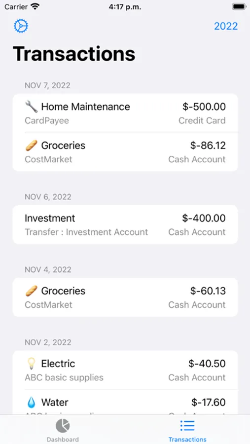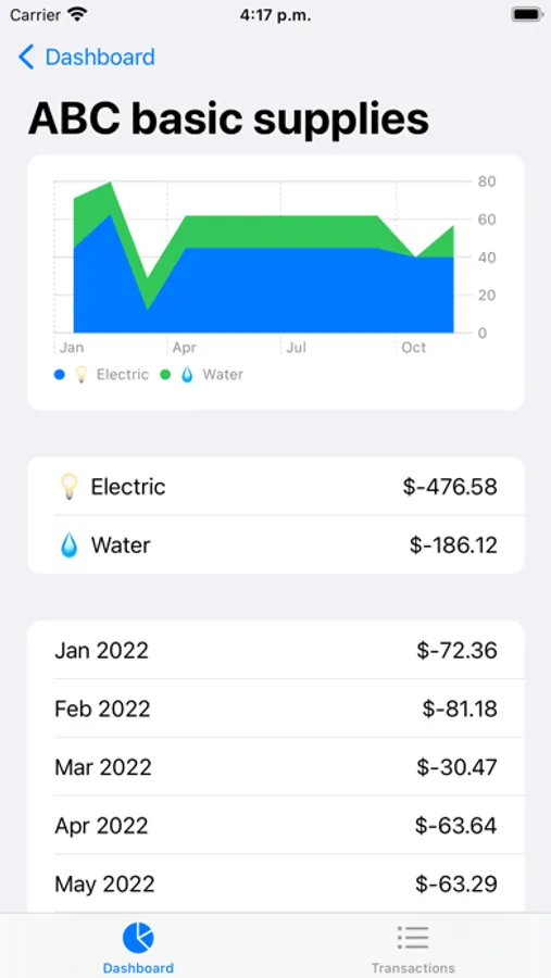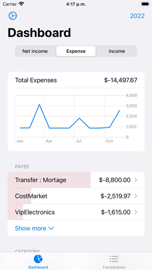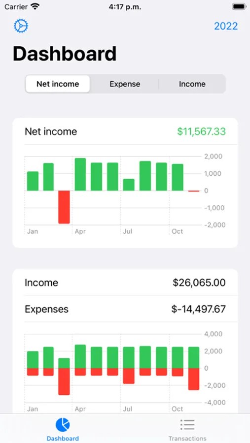 Check quickly and visually your income and expenses and how they are distributed throughout the months, by categories and payee.