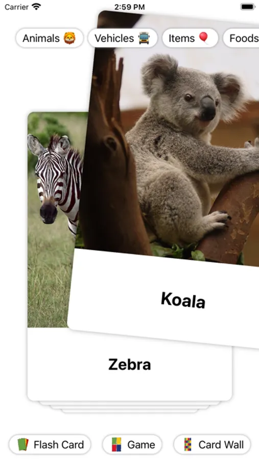 This is a Cognitive Flash Card App, which is made for 1 to 3-year-old babies to learn about animals, vehicles, foods ... etc.