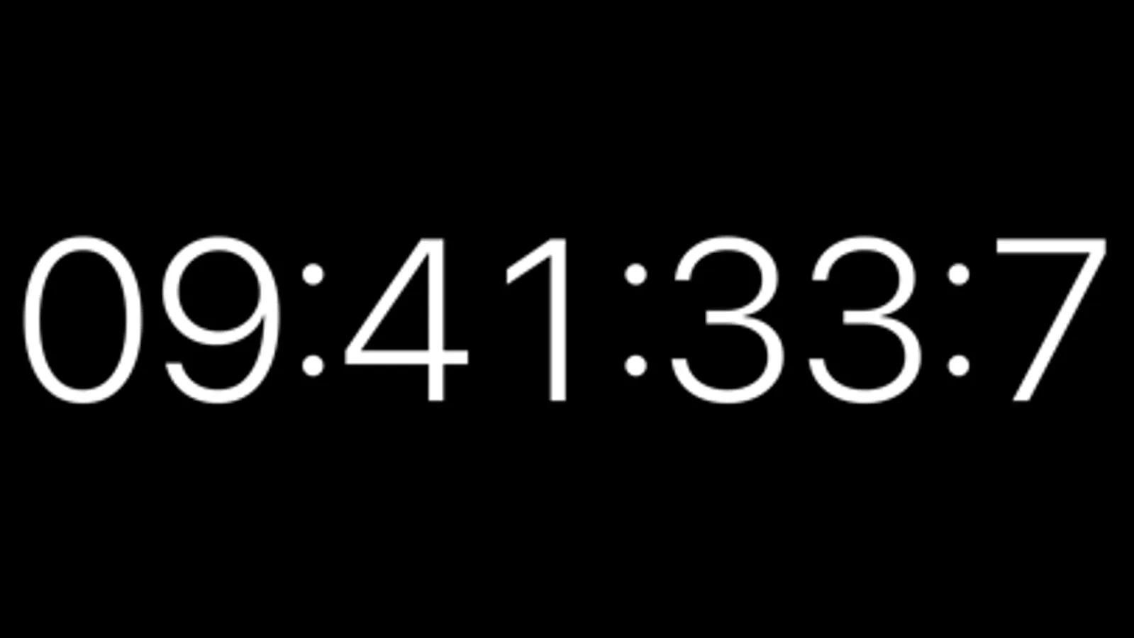 24h clock that shows hours, minutes, seconds, and 1/10 of a second.