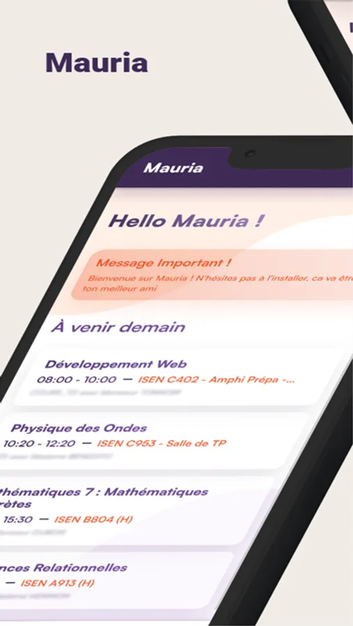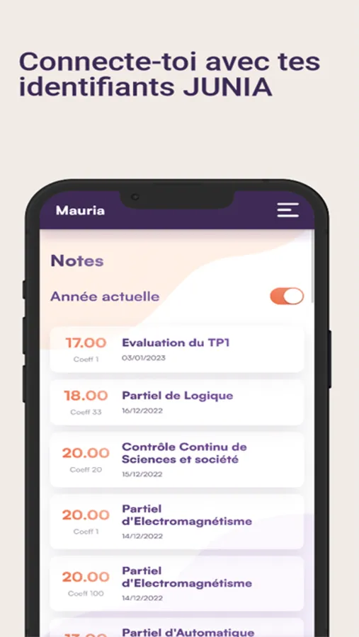 L'application MAURIA est l'outil des étudiants JUNIA. Cette application est amenée à changer avec le temps. Elle garantit un accès simple, rapide et efficace à vos données étudiants