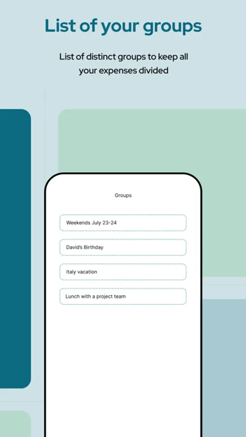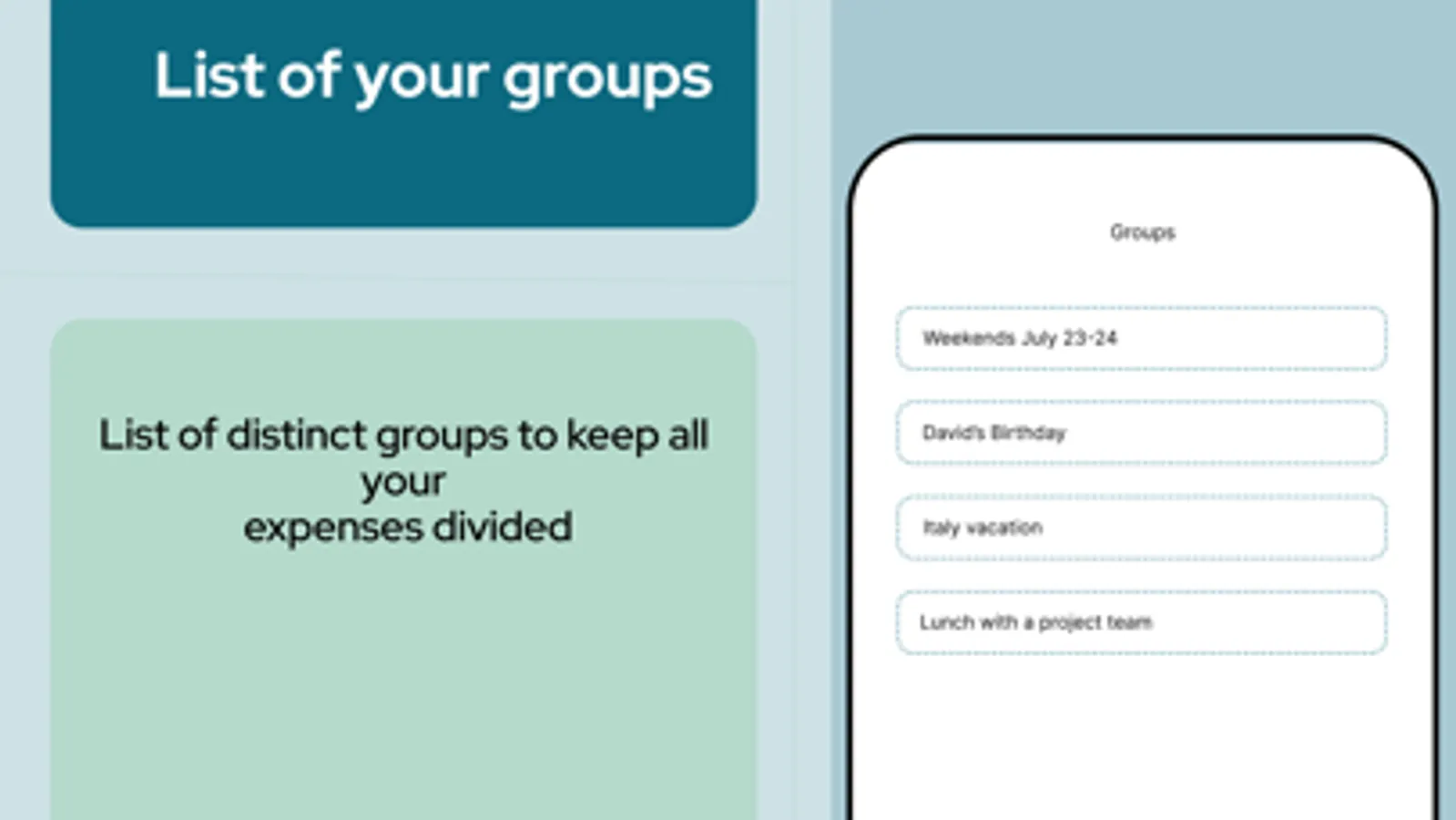 Create groups for any reason in your life: for travel, cozy evenings or lunches with colleagues, shared presents for a best friend, or to keep track of all your shared spending with an exact person.
