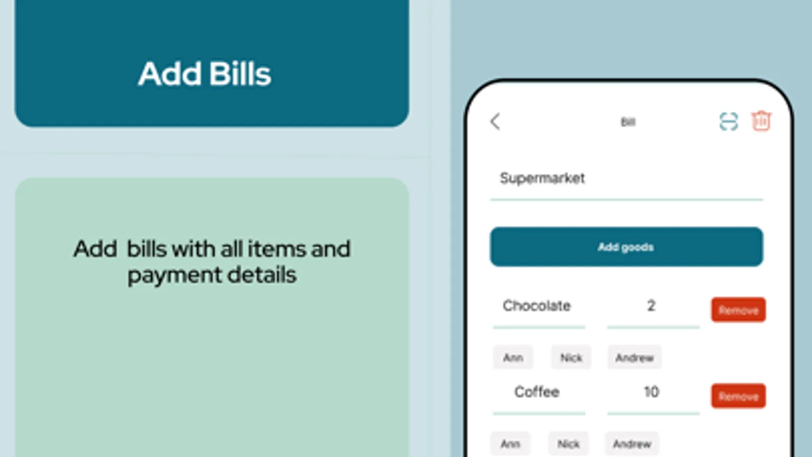 Do not try to remember all your debts and calculate them once a month with assumptions - quickly track this in-app based on bills or corresponding personal agreements.