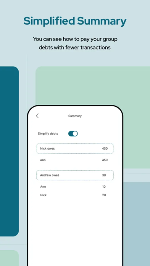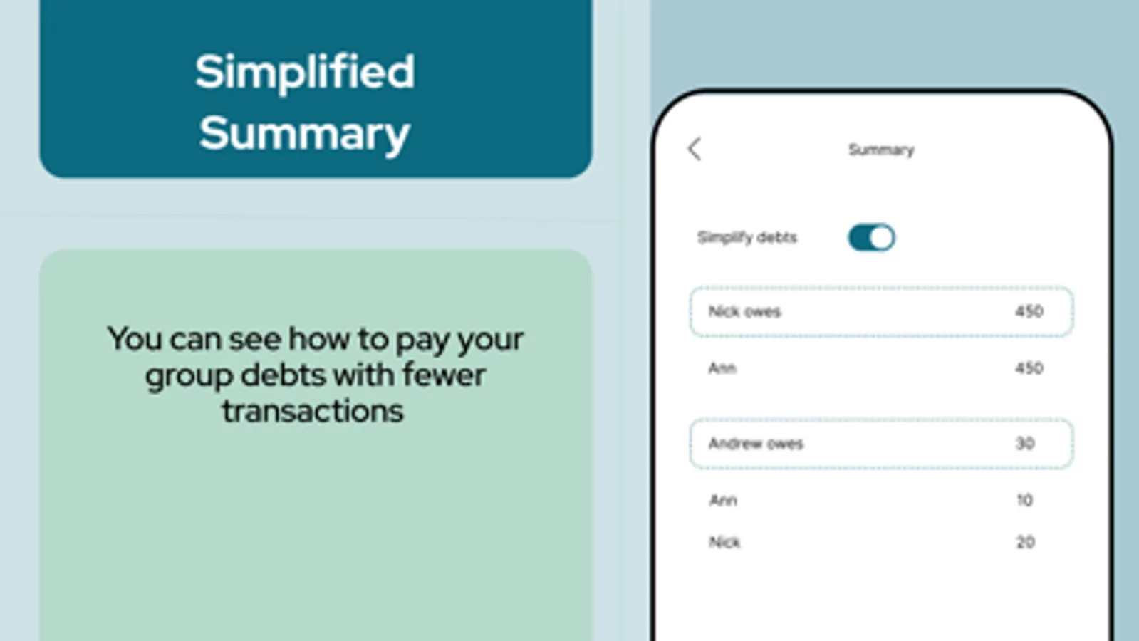 Order all your shared expenses and quickly get a shot summary with debt flow.