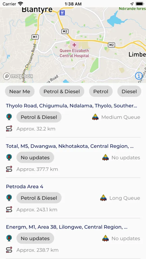 Find filling stations near you and find out the availability of fuel at the filling station.