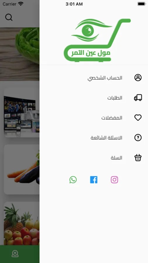 متجر مول عين التمر هو متجر بيع التجزئة الذي يوفر كافة الاحتياجات اليومية للناس مثل الفواكه والخضروات وبآسعار بسيطة وطرق متعددة للتوصيل ويدعم البيع نقد وبالآجل
