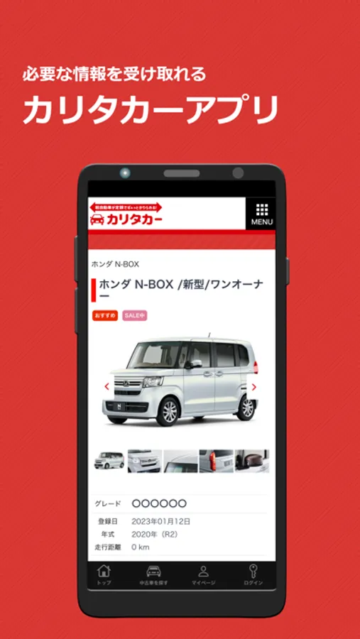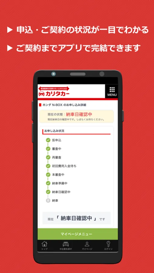 カリタカーアプリは、お申込みから契約、無人の車両引渡所で納車まで非対面で完結する、今までにないビジネス特許を取得した中古軽自動車の低価格カーリースです