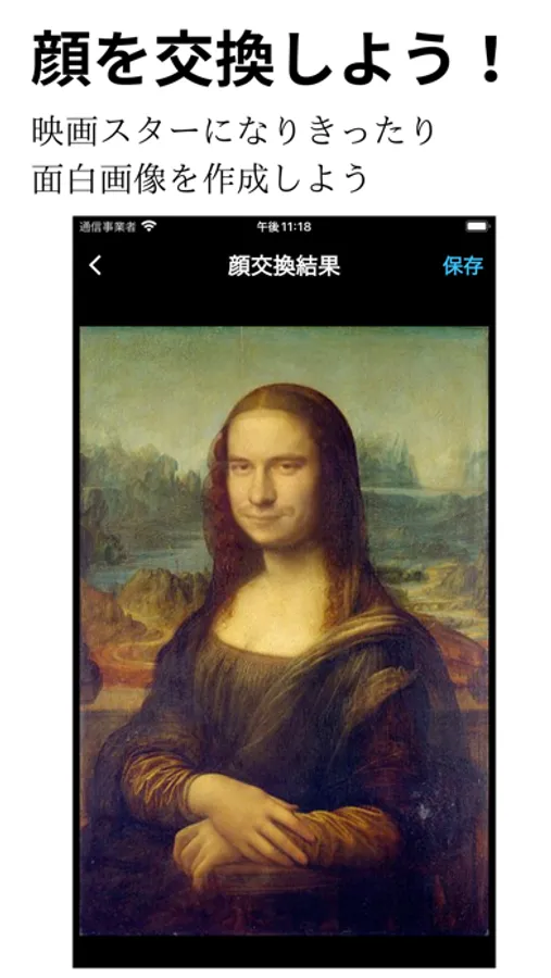 独自のAI技術で顔を検出し、写真の顔を別の顔に自動で交換します。AIで顔を合成するため表情も再現することができ、驚くほど自然に顔交換できます。魔法のように、一瞬で映画スターや有名人に変身しましょう!