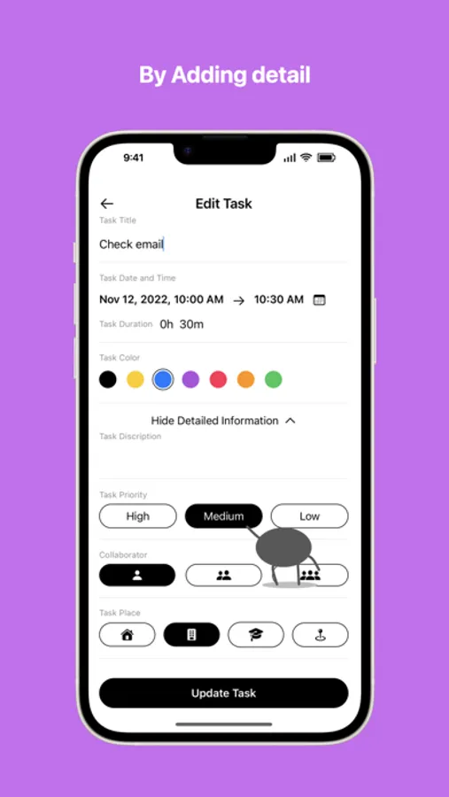 - Of course, you can fill in any necessary information. Tanabot has a convenient feature that allows you to add information such as Priority, Collaborator, Place, etc.