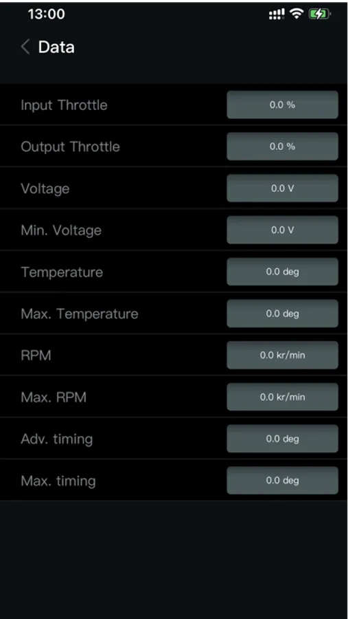 ESC1 establishes a connection through the Bluetooth of the mobile phone and the Bluetooth of the ESC, so as to realize the functions of adjusting the parameters of the ESC, viewing the data, and upgrading the firmware.