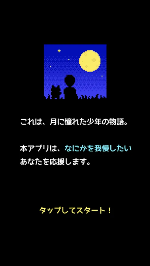 我慢した時間が伸びるごとにしのぶくんの冒険ストーリーが進みます。憧れの月を目指して、スーパーCATたえちゃんと飛び立とう!