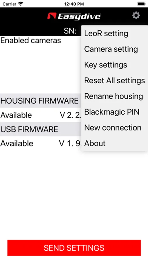 - Enable or Disable the settings of the housing LeoR, such as the back lighting of the push buttons, the power of accessories such as trigger, SDI converter for external video output and power supply for the camera.