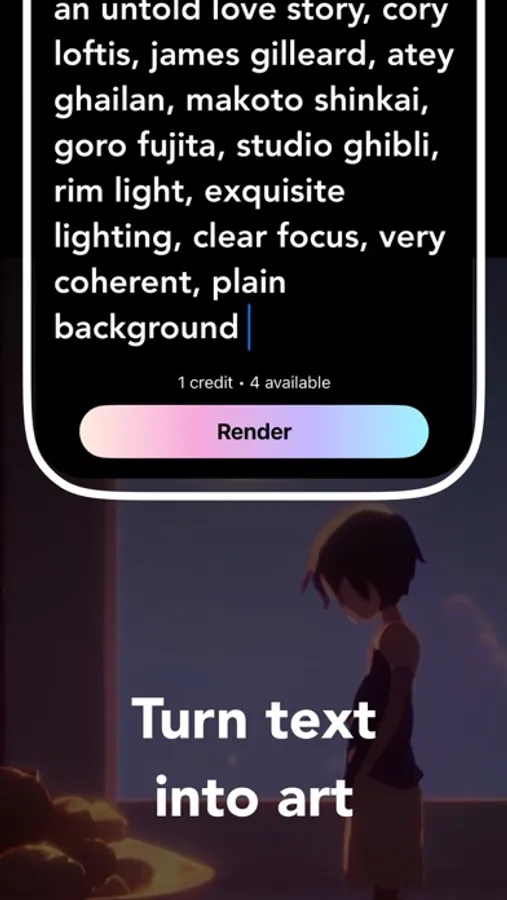 Love the style or theme of an existing image? Create beautiful variations while retaining the best parts. Import and render in just a few taps.