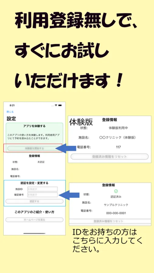 こちらのアプリは「予約お知らせアプリ」用の事業者様向けアプリです。