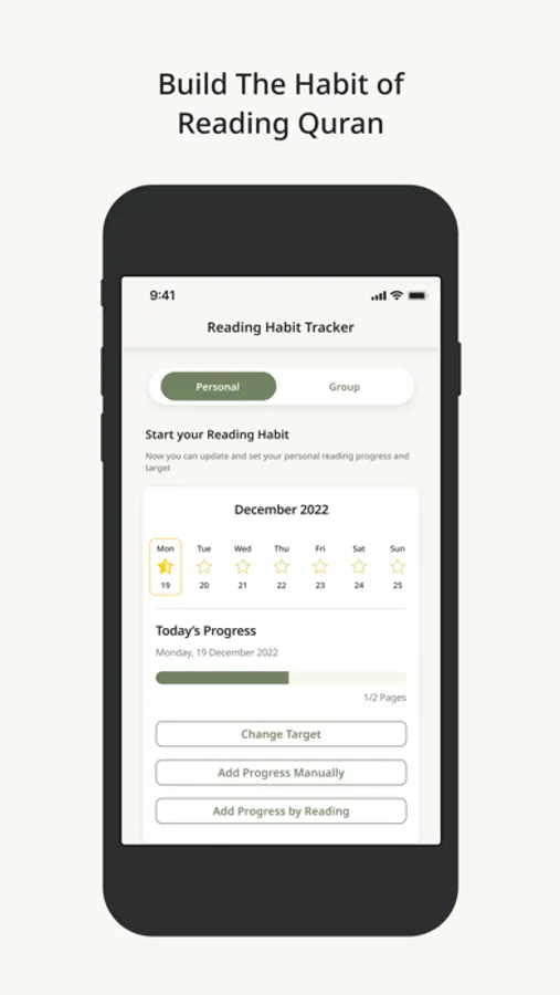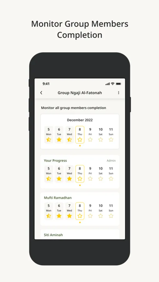 Untuk membuatmu lebih termotivasi, kami juga menyediakan fitur Habit Group dimana kamu dapat membuat grup baca Quran bersama teman, keluarga, komunitas, maupun orang-orang terdekat, dan dapat saling melihat progress baca Quran masing-masing.