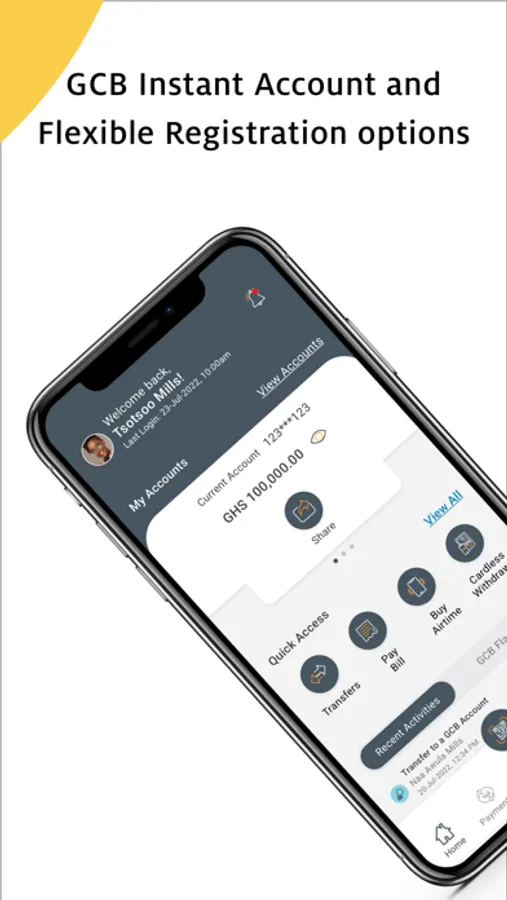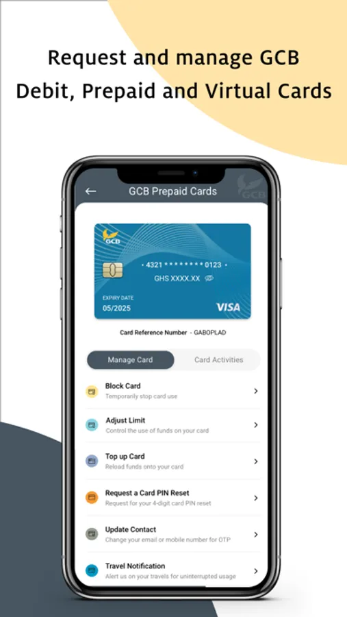 "GCB Mobile App is your choicest banking app in Ghana. It offers you a complete financial solution that lets you do everything from opening an account to investing in Term Deposits, all from your smartphone or tablet without visiting any branch. With GCB Mobile App, you can:
