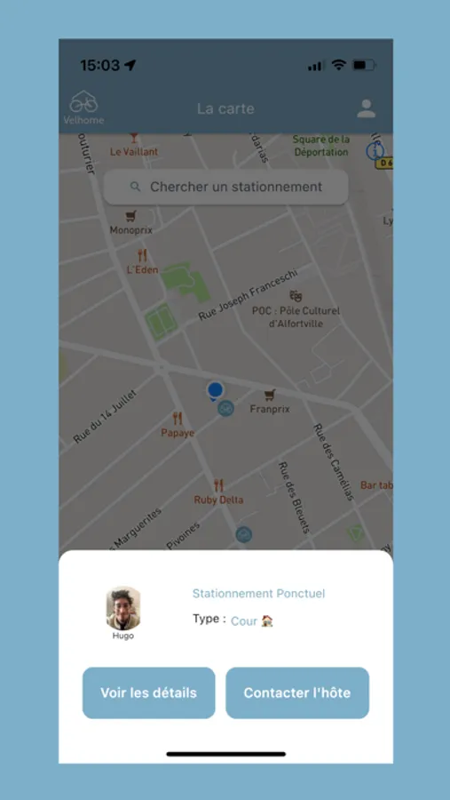 En tant que cycliste, tu vas pouvoir trouver un hôte pour stationner ton vélo en toute sécurité chez un autre utilisateur de Velhome.