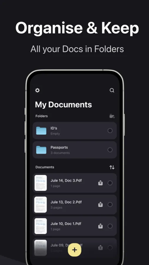 - Keep all your documents in one place, with the ability to create custom folders for organizing better. Rearrange files and folders with simple drag & drop movements, and print PDFs like contracts and invoices directly from the scanner app.