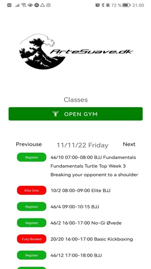 App for medlemmer af Arte Suave. Kan bruges til at tilmelde sig hold, men skal have et aktivt medlemsskab