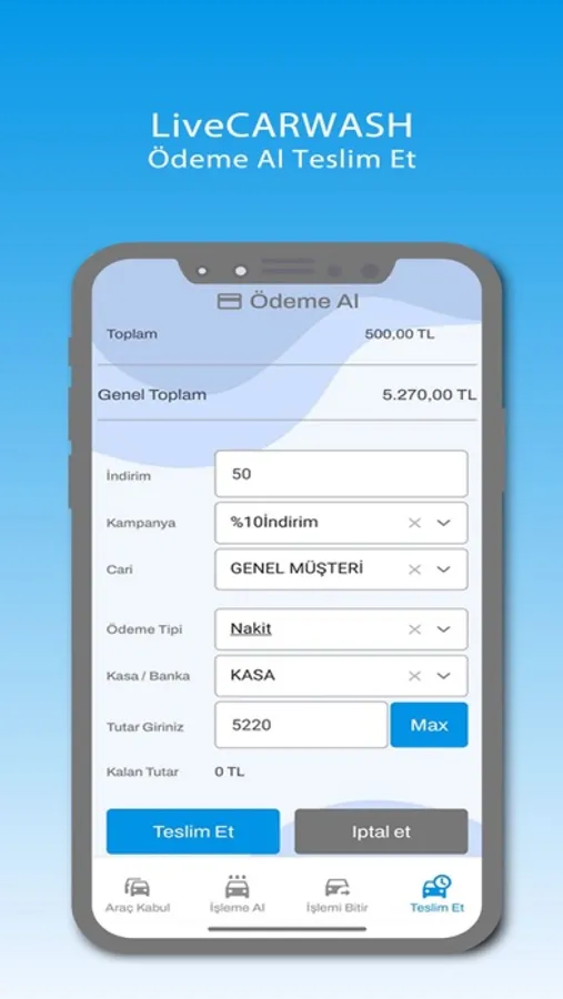 LiveCARWASH oto yıkama takip yazılımı, düzenli ve çözüm odaklı bir uygulama olup, personele hiçbir zorluk ve kafa karışıklığı yaratmadan iş sürecinizi en kolay şekilde ilerletecek bir sistemdir. Firmaya giriş yapan araç, hizmet türleri, araçların giriş çıkış detayları, firmanın günlük kazancı, personel kayıtları gibi birçok alanı kolaylıkla menüler üzerinden kontrol edip yönetmenizi sağlamaktadır. Siz de düzenli ve kolay bir çalışma sistemine sahip olmak istemez misiniz? Müşterinizin memnuniyetini sağlayıp bir sonraki seçiminin tekrar siz olmasını, size sunduğumuz Oto Yıkama Takip Yazılımı ile rahatlıkla sağlayabileceksiniz.