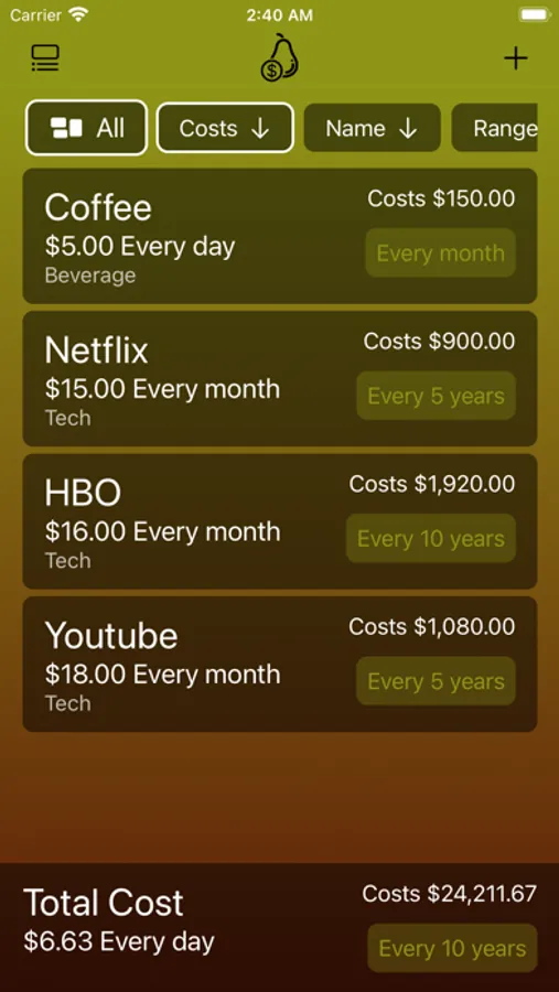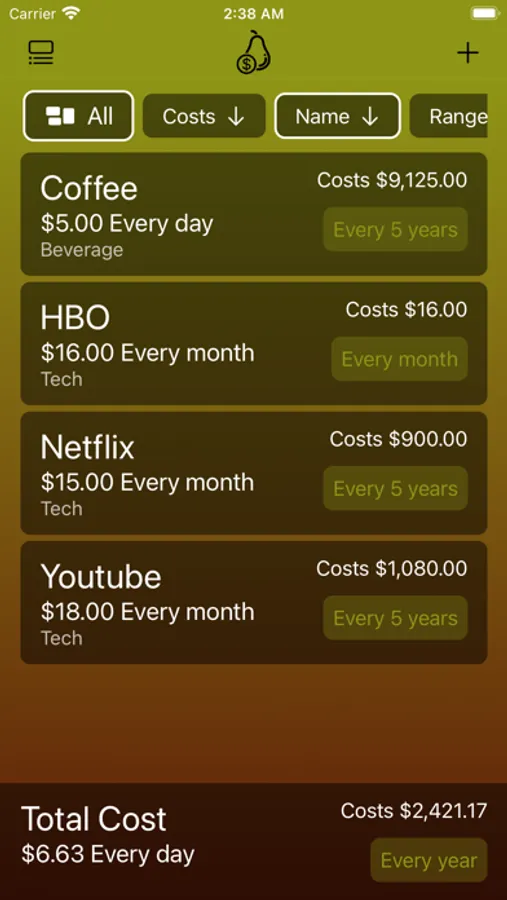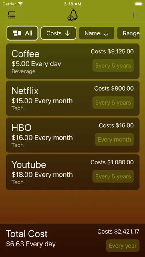 - It’s always just a simple tap to see how much your daily coffee cost per week, month, year, 5 year, 10 year, or 30 year.
