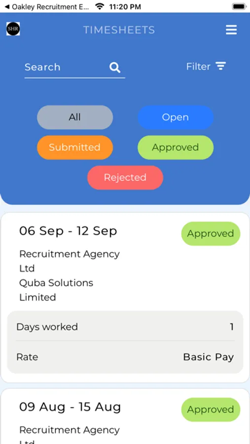 Allows SHR Group' clients to submit and approve timesheets conveniently from their mobile device. Candidates can submit units of work, clients can approve/reject with notifications.