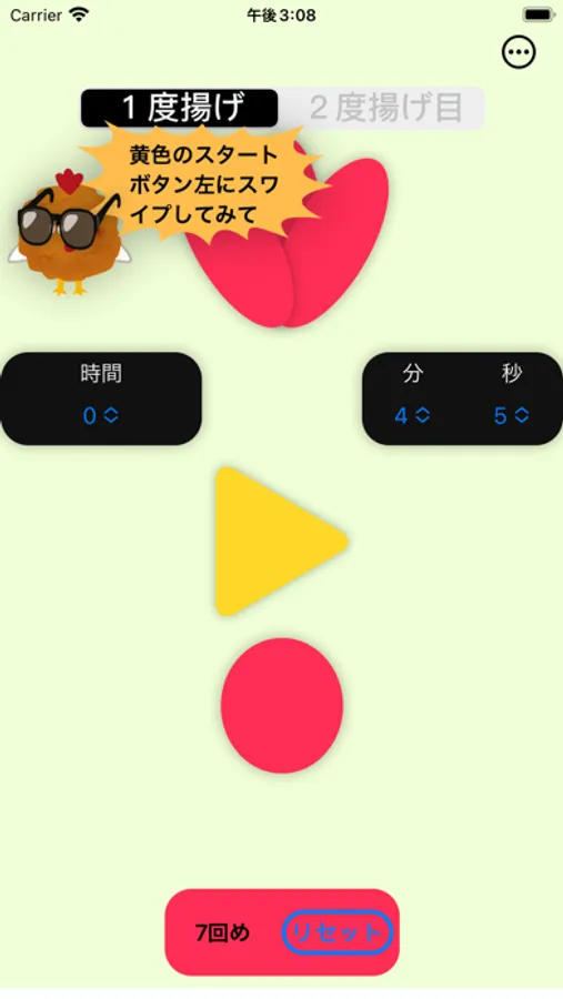 20秒前、10秒前、5秒前に予告「ぴよぴよ」音。
