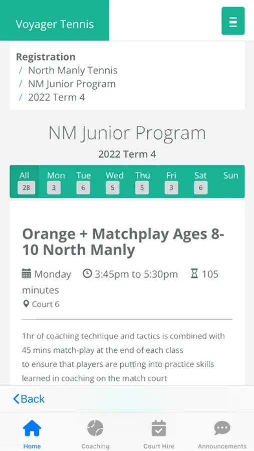 Voyager has classes for players of all abilities, with tailored programs delivered by experienced professional coaches.