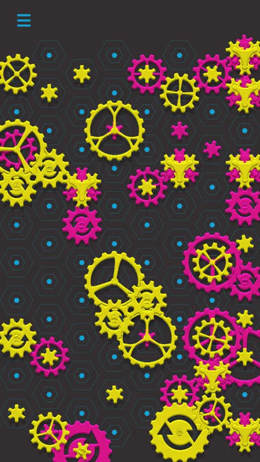Stacked gears turn if either of the colors match their neighbor. Different colors can overlap and spin.